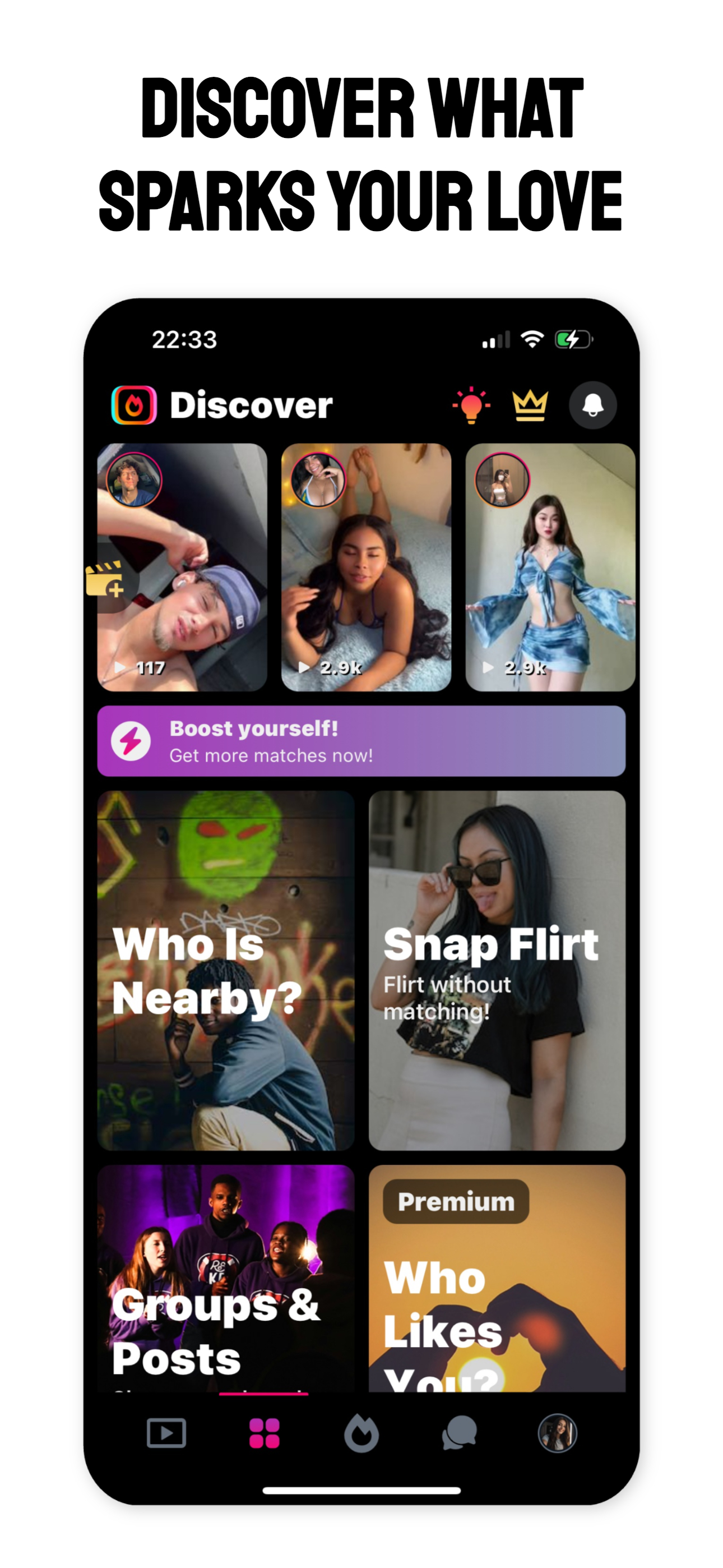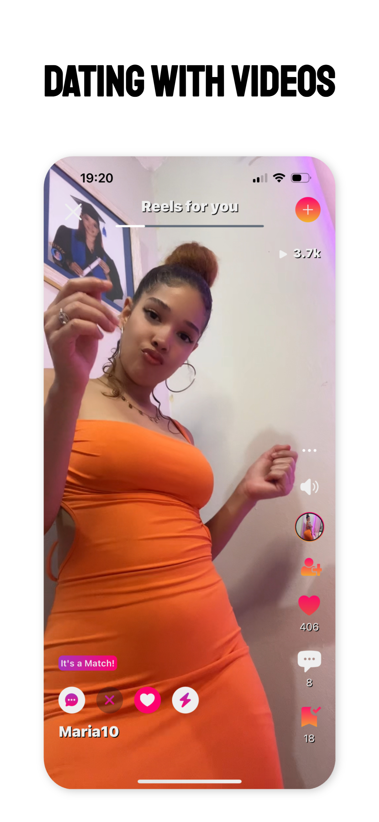 Video dating app for iOS and Android. Video for you feed, chat and video calls.